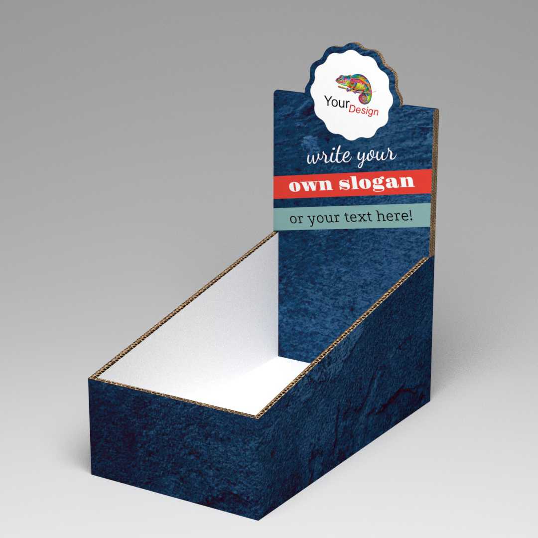 Een prachtig toonbankdisplay. Ideaal voor op uw toonbank of een andere plek binnen uw bedrijf. Bestemd voor producten die uw klant gemakkelijk kan meenemen. Door het personaliseren van de toonbankdisplay straalt u professionaliteit uit. Door de zeer gunstige prijsstelling kunt u nu voortaan uw producten professioneel aan de man brengen. Deze toonbankdisplay is ook leverbaar voor diverse formaten folders (A5, A4 en 21 x 21 cm), en is gemaakt van 3 mm golfkarton.